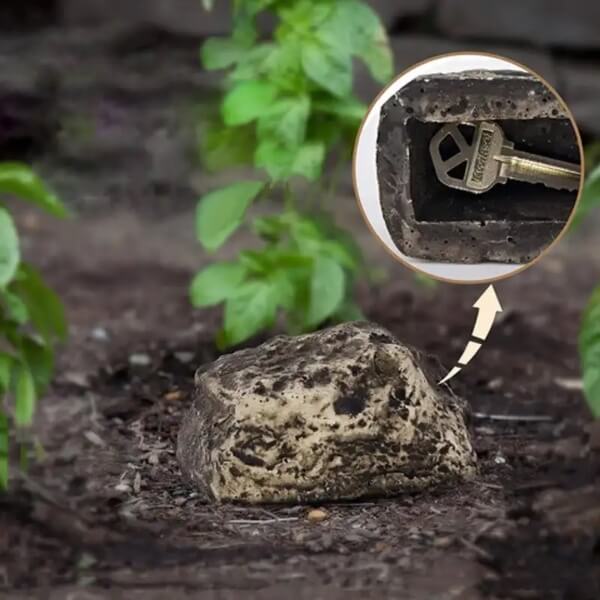Questo portachiavi a forma di roccia si integra perfettamente negli ambienti esterni, garantendo che la vostra chiave rimanga al sicuro e nascosta.